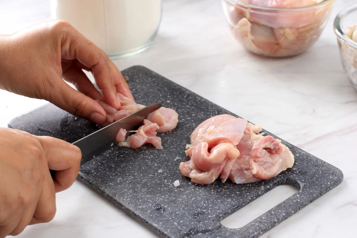 - Add the chicken thighs and marinate for at least 30 minutes.
