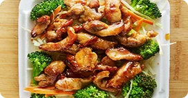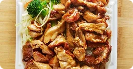 Savor fresh chicken with our homemade teriyaki sauce, served with rice and fresh vegetables for a classic, satisfying meal.